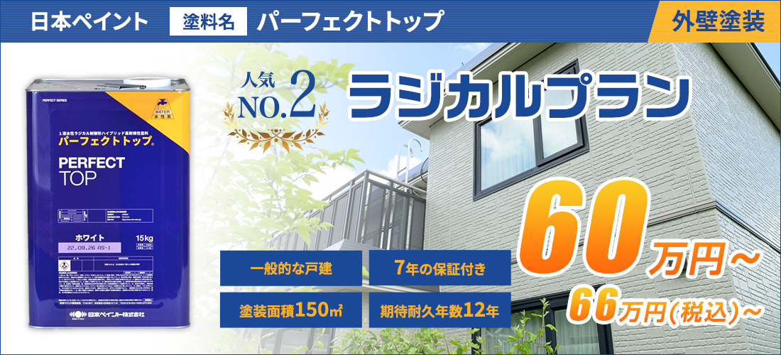先進のテクノロジーを駆使した緻密で強靭な塗膜が従来の同等クラスの塗料に比べ大幅に費用を抑え、次回までの塗替え期間を長くできる優れものです。